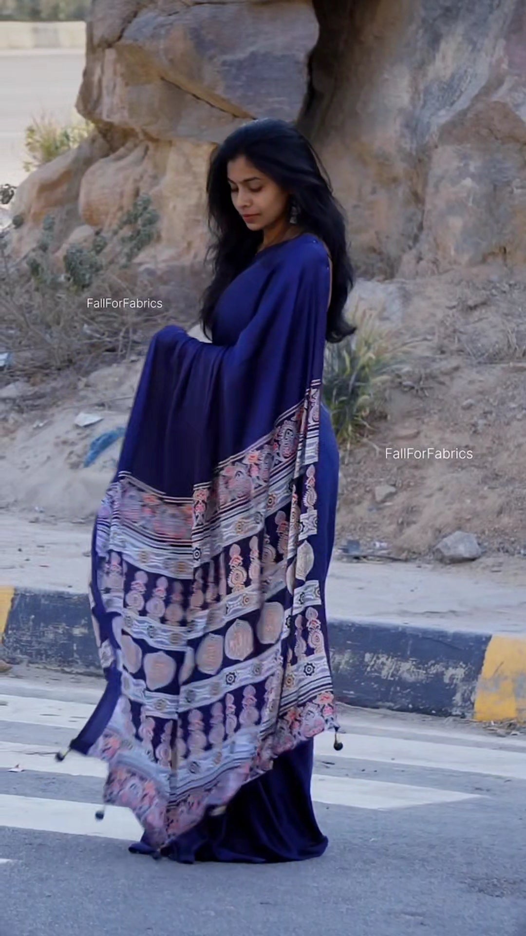 ROYAL BLUE COLOR AJRAKH PALLU SAREE. ROYAL BLUE COLOR AJRAKH PALLU SAREE.